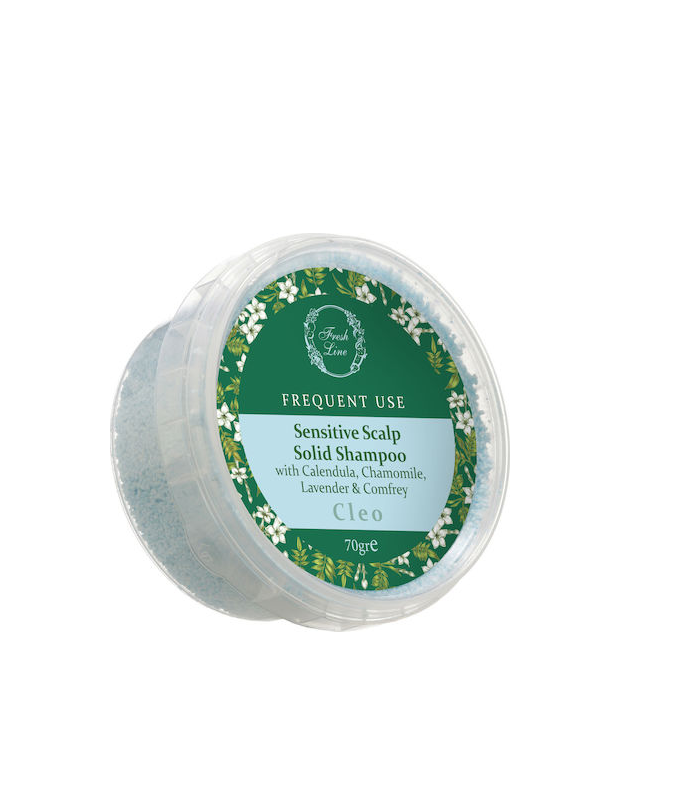 100% χειροποίητο σαμπουάν σε μορφή μπάρας σαπουνιού. Για την παραγωγή του, φυσική σαπουνόμαζα αναμειγνύεται στο χέρι με βοτανικά εκχυλίσματα που προσφέρουν καταπράυνση και σέβονται το pH του τριχωτού.