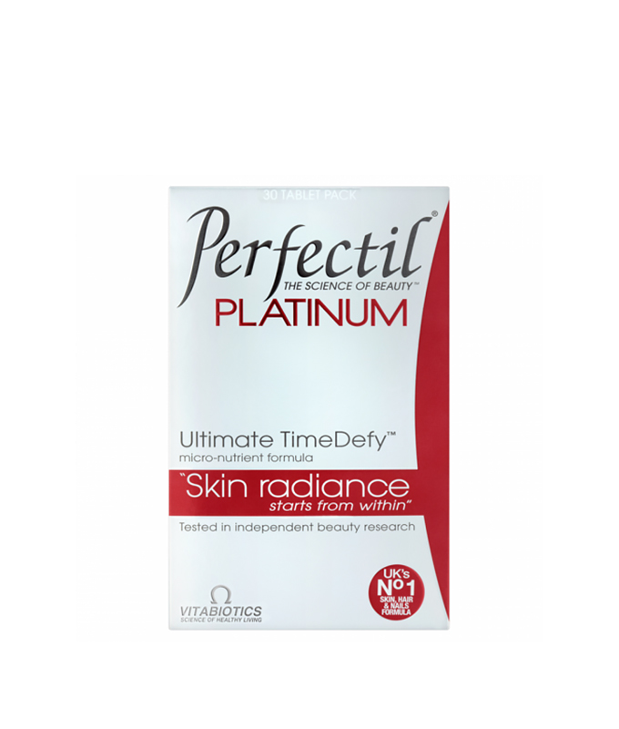 Το Perfectil Platinum παρέχει κολλαγόνο, το οποίο είναι μια πρωτεΐνη απαραίτητη για τη συνοχή του δέρματος, καθώς και βιταμίνη C, η οποία συμμετέχει στο σχηματισμό του κολλαγόνου.