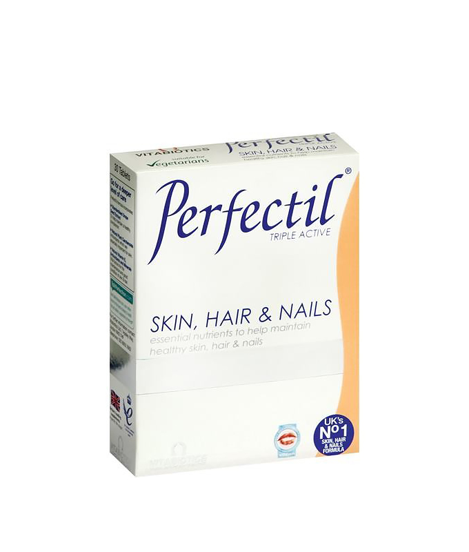 Το συμπλήρωμα διατροφής Perfectil Original της Vitabiotics παρέχει στον οργανισμό 22 θρεπτικά συστατικά όπως βιταμίνες, μέταλλα, L-κυστίνη και εκχύλισμα σταφυλιού, που σύμφωνα με μελέτες μπορούν να συμβάλλουν στην υγεία του δέρματος, των μαλλιών και των νυχιών.