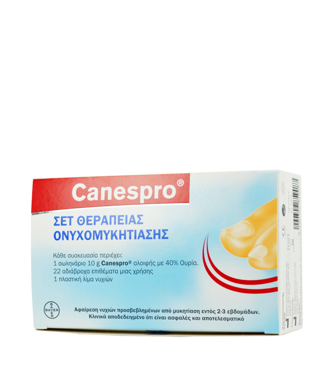 Το σετ Θεραπείας Ονυχομυκητίασης Canespro® χρησιμοποιείται ως μέρος τοπικής θεραπείας των ονυχομυκητιάσεων των χεριών ή των ποδιών.