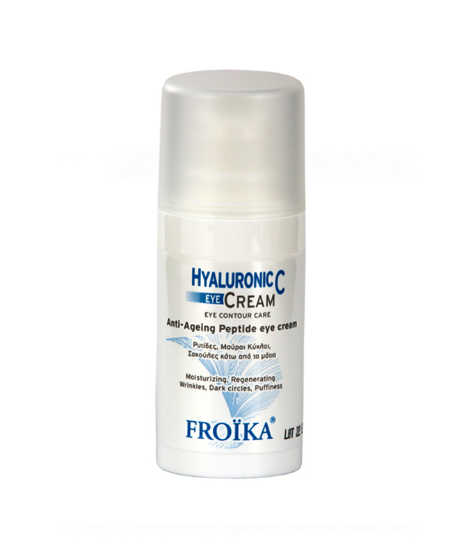 FROIKA Hyaluronic C Eye Cream φροντίζει και περιποιείται την ευαίσθητη περιοχή των ματιών φωτίζοντας το δέρμα, ταυτόχρονα με την πρόληψη των ορατών σημαδιών της γήρανσης