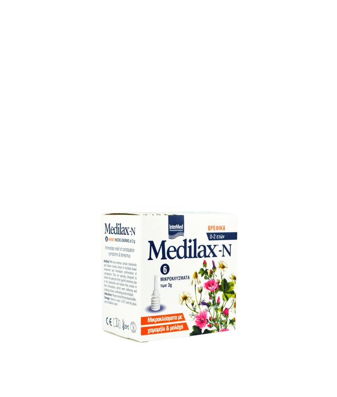 Τα ιατροτεχνολογικά προϊόντα MEDILAX®-N μικροκλύσματα περιέχουν φυσικά εκχυλίσματα χαμομηλιού και μολόχας και προορίζονται για την ανακούφιση από τη δυσκοιλιότητα.