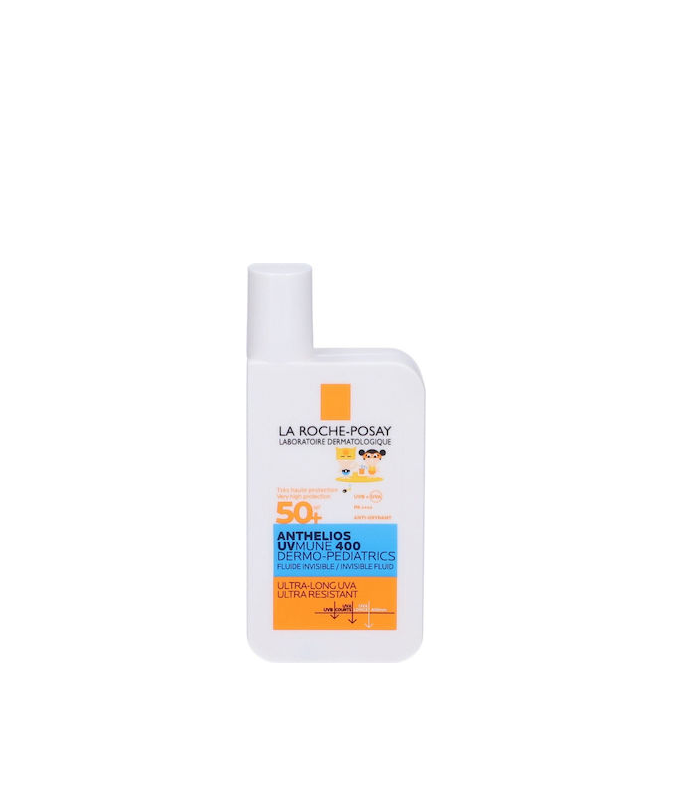 Παιδικό αντηλιακό από τη σειρά Anthelios - Dermopediatrics της εταιρείας La Roche Posay, σε μορφή γαλακτώματος. Προσφέρει υψηλή προστασία από τις ακτίνες UVA/UVB για το ευαίσθητο παιδικό δέρμα.