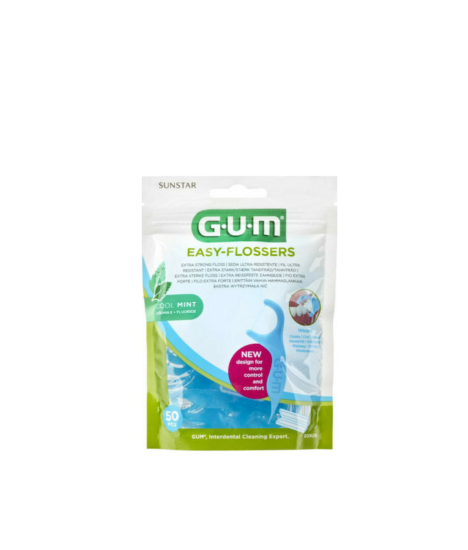GUM Easy-Flossers 890 Κερωμένο Οδοντικό Νήμα με Γεύση Μέντα και Λαβή σε Γαλάζιο χρώμα 50τμχ